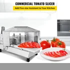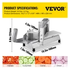 Document Product Description Commercial Tomato Slicer--Free Your Hands 3/8" Thickness & Two Handles & Detachable Blade This commercial tomato slicer is designed to quickly divide a whole tomato into even slices 3/8-inch thick. It cuts tomatoes, fresh onions and other kinds of vegetables and fruits quickly and effortlessly, saving you time for other kitchen tasks. The incredibly sharp stainless steel blade is detachable and easy to clean. Prepare to leave your guest in awe at the sight of your delicious, mouth-watering dishes. Well Constructed & Sturdy Material 3/8" Precision Cutting Upgraded Handle Security-ensuring Designs Multi-Functional Slicer For Vegetables & Fruits Tough Equipment & Tools, Pay Less VEVOR is a leading brand that specializes in equipment and tools. Along with thousands of motivated employees, VEVOR is dedicated to providing our customers with tough equipment & tools at incredibly low prices. Today, VEVOR's products are sold in more than 200 countries and regions with 10 million plus members worldwide. Why Choose VEVOR? Premium Tough Quality Incredibly Low Prices Fast & Secure Delivery 30-Day Free Returns 24/7 Attentive Service Key Features Tough Aluminum Construction It will provide you with years of trouble-free operation. This commercial vegetable slicer features heavy-duty aluminum for enhanced stability and sturdiness. Razor-sharp Blades The pre-tensioned cartridge blade set is made of food-grade stainless steel, which is sharp and durable. It can cut tomatoes into 3/8-inch thick slices within one minute. Multi-directional Handles The vertical push handle is ergonomically designed to easily cut large quantities of tomatoes. Another handle on the top makes it easy to lift and carry. Security & Stability The security guard is specially positioned to effectively avoid your hands being cut by the razor-sharp blades set. With four rubber feet, you can rest assured that the tomato slicer will remain firmly in place during use. The rubber material avoids the work surface from slipping and scratching. Easy Cleaning The main body is made of cast aluminum alloy, and the blades are detachable. The whole machine allows direct rinse with water. No need to worry about cleaning anymore. Wide Application Our industrial tomato slicer is specially designed to create uniform 3/8-inch thick vegetable slices for your juicy burgers, fresh delicious sandwiches, and signature subs. Specifications Slice Size: 3/8" Thick Blade Material: Stainless Steel Blade Type: Angled Product Weight: 9.5 lbs / 4.3 kg Product Dimensions: 19.2" x 7.3" x 8.8" / 488 x 185 x 224 mm Package Content 1 x Tomato Slicer 1 x User Manual Features & Details Well Constructed & Sturdy Material: The tomato slicer's body is made of heavy-duty and sturdy cast aluminum alloy for easy portability and durability. The reinforced frame facilitates the stability of the machine. The incredible frame ensures that you can slice for years to come. 3/8" Precision Cutting: The commercial tomato slicer features a specially designed food-grade stainless steel blade set, enabling 2 dozen tomatoes to be cut into uniform 3/8-inch thick slices in one minute. It will feel as easy as cutting butter with a hot knife. The sharp blades are removable for easy cleaning. Upgraded Handle: Equipped with one ergonomic vertical handle and one horizontal handle to help you apply force to commercial slicers for easy slicing. Don't just see the difference, get ready to feel the difference one cut at a time. Security-ensuring Designs: The shield keeps your hands stay away from accidental cuts during operation. Four rubber feet effectively avoid the commercial tomato slicer from slipping, ensuring maximum stability. Multi-Functional Slicer For Vegetables & Fruits: This versatile tomato slicer is suitable for slicing tomatoes, onions, garlic, cucumbers, strawberries, mushrooms and other vegetables and fruits. Perfect for keeping fresh veggie slices on hand for hamburgers, sandwiches, salads, and more. Get ready to shock your guest with perfectly sliced vegetables and fruits every time. People Who Bought This Item Also Bought VEVOR Commercial 15Qt Food Mixer Electric Stand Dough Bakery Mixer 3 Speeds 600W VEVOR Electric Commercial Meat Cutting Cutter Machine Slicer Dicer 7mm Blade VEVOR Commercial Immersion Blender 400mm Stick 350W Handheld Mixer Fixed Speed VEVOR Fruit Vegetable Slicer Cutter 0.2-12mm Adjustable Slicer Stainless Steel VEVOR Commercial Can Opener NSF Certified Medium Duty Table 20" Stainless Steel VEVOR Commercial Vegetable Dicer Fruit Dicer 3/8-Inch Food Chopper w/Handle SUS VEVOR 7.5" Commercial Meat Slicer 45W Electric Deli Slicer for Meat Cheese Bread VEVOR 1/4" Commercial Vegetable Dicer Fruit Dicer Fruit Vegetable Chopper SUS VEVOR 6-Section Wedge Fruit Dicer Food Citrus Cutter Lemon Fruit Cutter SUS VEVOR Commercial Fruit Tomato Slicer 1/4'' Cutting Machine Stainless Steel Blade Manual Pastry Press Machine Stainless Steel 7.8" Cake Pizza dough Bread Press VEVOR Commercial 10" Electric Meat Slicer Blade 240W 530RPM Deli Cheese slicer VEVOR Commercial Vegetable Dicer Vegetable Chopper w/4 Blades French Fry Cutter VEVOR Vegetable Cutter Commercial Food Processor 6 Disks Vegetable Processor VEVOR Fruit Vegetable Slicer Cutter 0.2-12mm Adjustable Slicer Stainless Steel SHIPPING ABOUT US PAYMENT RETURNS CONTACT WARRANTY Welcome to our eBay store. As a leading and emerging company in manufacturer and exporting business, we are specialized in Business and Industrial Products, Sporting Goods, Pet Products, Home and Garden products for more than 10 years. We believe that it is our vision and mission to provide innovative products with best service and competitive price to satisfy you. Our goal is to make sure that you can find exactly what you are looking for and make it easy for you to place your orders. We accept PayPal payment,PayPal Credit,Credit card or debit card and so on. Payment should be completed within 4 (Four) days of auction clo