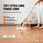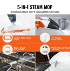 About This Product Rapid Steam Generation: Both models are capable of generating high-temperature steam rapidly - within 30 seconds for the first model and 15 seconds for the second, allowing for natural deep cleaning of dust, mucus, and stubborn stains. Users have the option to add cleanser in the detergent tank to enhance the cleaning effect. Customizable Steam Levels & Duration: The steam mops feature three-level steam volume options and different power levels - 1300W and 1200W, respectively, delivering powerful steam as needed. The first model has a visible water tank, while the second model can provide up to 40 minutes of continuous steam with a 400ml/14.5 oz water tank. Multifunctional & Versatile Cleaning: Both steam mops can be transformed into handheld devices and come with various additional brush heads and accessories, enabling cleaning of different surfaces including carpets, grills, tiles, toilets, and sinks. Lightweight, Convenient & Comfortable Operation: Featuring long power cords, lightweight bodies, swivel mop heads, and self-standing capabilities, both models offer ease of use and the ability to reach every corner. The mop pads are machine-washable and reusable. Safety on Hard Surfaces: The VEVOR steam mops are designed for safely cleaning almost all hard floors such as tiles, vinyl, laminate, marble, stone, and sealed hardwood floors, ensuring quick floor drying without damage. Consolidated Package Content: 8-in-1 for White Option: 1 x Steam Mop Body 1 x Cone Nozzle 1 x Small Nozzle 1 x Scraper 1 x Large Round Brush 1 x Small Round Brush 1 x Straight Bristle Brush 2 x Rectangular Mop Pads for Corner 1 x Carpet Slide Cover 5-in-1 for Red Option: 2 x Mop Pads 1 x Carpet Slide Cover 2 x Plastic Round Brushes 1 x Brass Brush 1 x Jet Nozzle