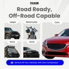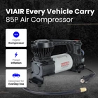 B R A N D N E W VIAIR Digital EVC85P Portable Air Compressor Tire Inflator for Car, SUV & Truck Preset Automatic Shut Off Feature 12V Road Tire Pump Air Compressor 60 PSI The VIAIR Every Vehicle Carry 85P - Digital 12 Volt Portable Air Compressor for All Vehicles The new and improved version of the customer favorite 85P delivers a digital gauge and preset pressure for easier-than-ever functionality. 5-Step to Air Up with Preset Pressure Feature (1) Push the plug into the cigarette lighter port in your vehicle's interior. (2) Start your engine. (3) Attach the twist-on chuck to the tire valve. (4) Set the desired pressure and wait for the tire to inflate. (5) The portable tire air pump will automatically shut off when the desired pressure is reached. Road Ready, Offroad Capable The sky's the limit with the EVC85P. Servicing all vehicle types, from sedans, sports cars, and small trucks, no vehicle in your garage will ever be without air. Includes a Presta valve adapter for bikes, balls and inflatables. Filling a 225/60/18 tire from 30 to 40 PSI in 1.08 minutes or less, the Every Vehicle Carry 85P gets you back on the road in no time. Great for Families Enjoy peace of mind as you send your teenager, college student and other family members off with a reliable, easy to use air pump. Ultra Portable with Canvas Carrying Case The EVC85P electric car & truck tire pump has a maximum dimension of 9.1 inches and weight of 4.3 pounds. Store it in your trunk or mount to your vehicle for easy access and never be without air. Conveniently stored in a durable canvas carrying case with top handle, the tire inflator air compressor is ready to use at any moment, whether you're at home, stopped on a busy roadway or out in the middle of nowhere. Choosing Between 12V Battery Clamps and Cigarette Lighter Plug: Pros & Cons The EVC88P uses alligator clips for a direct battery connection due to its higher current draw. In contrast, the EVC85P uses a cigarette lighter plug, drawing less current and allowing access from your car's interior. The choice depends on your preference. DIGITAL COMPRESSOR for ALL VEHICLES: The new & improved version of the customer favorite 85P, the Every Vehicle Carry 85P features a digital gauge and preset pressure with automatic shut-off feature. Now, every driver can experience VIAIR's legendary long-lasting performance and reliability with ease. HOW TO USE PRESET PRESSURE: (1) Push the plug into the cigarette lighter port in your vehicle's interior. (2) Start your engine. (3) Attach the chuck to the tire valve. (4) Set the desired pressure and wait for the tire to inflate. (5) The portable tire air pump will automatically shut off when the desired pressure is reached. INCLUDED COMPONENTS: 12V mini air compressor tire inflator has a 3 ft air hose, 10 ft power cord, built-in pressure gauge, deluxe carry bag, 3 inflation tips (3/16" nozzle, 5/16" nozzle, and needle adapter) stored on compressor, press-on chuck, LED light, and Presta valve adapter. RAPID, ACCURATE INFLATION: With the press of a button, it delivers a maximum working pressure of 60 PSI with a duty cycle of 20 minutes at 30 PSI; Free flow capacity: 1.26 CFM. Maximum Recommended Tire Size: 31". Fills a 225/60/18 tire from 30 to 40 PSI in 1.08 minutes or less and is 65% faster than leading competitors. Dimensions: 9.1″L x 3.1″W x 5.6″H; 4.3 lbs. SAFE & RELIABLE: Inflate tires on sedans, SUVs and sports cars. Even capable on small trucks and ATVs. Reliable, convenient and easy to use. Great for families and daily driver vehicles. So easy, anyone can use it. We Do Not Ship P.O BOX AND Outside of the Continental US.