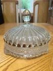 GENERAL NOTES FOR ALL OUR ITEMS: Specific item details below. This is an item from an estate. We are not collectors. If there is information you need that we have not shown in the pictures (condition of box, for example) or in the description, PLEASE ASK before buying. If you need another picture of a different view, PLEASE ASK. This is being sold as is and is not being represented as being in perfect condition (although most items we sell are like new), so PLEASE ASK any questions before buying. We try to respond as soon as possible. We also try to show pictures from every angle possible. If we don't think an item has been removed from the original packaging, we don't take the item from the box, so if there is something you need to know about the item that involves that, again PLEASE ASK before purchasing. If we do take the item out of the packaging, we show you what packaging is included. THANK YOU and thanks for looking!!!! All items are from a smoke-free home. We have dogs so we cannot guarantee that there won't be an occasional dog hair in a package even though the items are kept up and away from the dogs. THIS LISTING IS FOR A VINTAGE CUT GLASS LIDDED CANDY DISH/ POWDER DISH. IT HAS GOLD ETCHING ON THE LID THAT IS PARTIALLY WORN DUE TO AGE. THE DISH IS 6" WIDE AND AROUND 5 1/2" TALL. MY RESEARCH FOUND NO MAKER OF THIS VINTAGE PIECE. ADDITIONAL PHOTOS UPON REQUEST. THESE ITEMS WERE RECEIVED FROM A FAMILY ESTATE. ADDITIONAL PHOTOS UPON REQUEST. ADDITIONAL INFO UPON REQUEST. CHECK OUT OUR OTHER COOL ITEMS IN OUR EBAY STORE!!! WE SHIP ANYWHERE...WE SHIP FAST!!!!