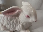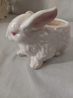This is a vintage ceramic bunny planter with a glossy finish. It is likely from the mid-century era and possibly made by Lefton. The planter features an all-over pattern and is perfect for Easter or as a novelty item. The rabbit subject and retro style make it a unique decorative collectible for any room. The planter measures 6.5 inches in length and is in EUC used condition. Please check out my store Pops Treasure Finds. Please follow me never know what I come across. I buy abandoned storage lockers. Buy Estates and yard sales. Hope you enjoy. Thank you