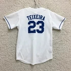VINTAGE Texas Rangers Majestic Jersey Large Youth White 23 Teixeira Baseball Boy