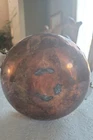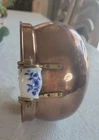 The product is a vintage copper pot with blue and white Delfts porcelain handles from Holland. It serves as a planter or jardiniere, adding a decorative touch to any space. Made of copper, it showcases a traditional Dutch design with a touch of elegance and charm. The pot measures 4 inches tall and 6 inches in diameter. There are oxidized spots throughout. See photos. E- mail me with questions. Thanks for checking out my auctions!