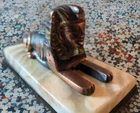 VTG Cast Egyptian Sphinx Copper Brass Bronze Colored Figurine on Marble Base. Nice vintage pre-owned condition with a couple of small chips on the marble base, typical for these items. Please see the photos for a more complete condition description. This figurine looks like metal, but I can't be certain. It is definitely hand painted. It is fairly heavy and measures about 5.5 inches long, and both 2.5 inches wide and tall. All of my items are carefully packed for shipping, no matter their value - $5 items are wrapped with the same care as a $200 item. My goal is to have your purchase arrive safely. Large, heavy and fragile items are harder to use combined shipping with but just ask if you would like to purchase more than one item and I am more than happy to do so if feasible. Measurements are approximate or as close as I can get. Also, the color you see many not be the exact color depending on your computer or phone settings. Unpaid items will result in the buyer being blocked from further purchases. Please remit payment right away so we can get your item shipped out quickly.