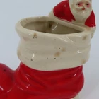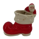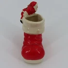 Vintage ceramic booth with climbing Santa Claus Stamped something on base but cannot make out the words Width: 3.5" Height: 3.5" **measurements are approximate, taken with item laying flat Condition: used, surface wear- see photos, smoke free home Please review all photos closely as these will be the best description of the item. Thank you for shopping!