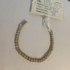 This vintage Dansal bracelet is a stunning piece of jewelry that will surely catch anyone's eye. With beautiful white/colorless Cz main stones and a yellow gold filled metal, this bracelet exudes a retro era beauty. Measuring at 7 inches in length, it is perfect piece for many occasions. The bracelet is a great addition to any collection. Its tennis style and 14k gf metal purity add to its elegance. This piece is perfect for anyone who loves vintage and antique jewelry, and it's sure to make a statement wherever it's worn.Made in providence Rhode Island USA new old stock I bought the remains of this old company.