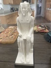 This stunning vintage Egyptian statue features the powerful pharaoh Kafre and is made from genuine alabaster. The intricate details of the statue were carved by skilled artisans in Italy and showcase the rich culture of Egyptian history. The statue is a true collectible and would make a great addition to any collection of Egyptian art. It is also a handmade piece, making it a unique and one-of-a-kind item. Don't miss your chance to own this beautiful and authentic piece of Egyptian history. No original box Thanks for your business!