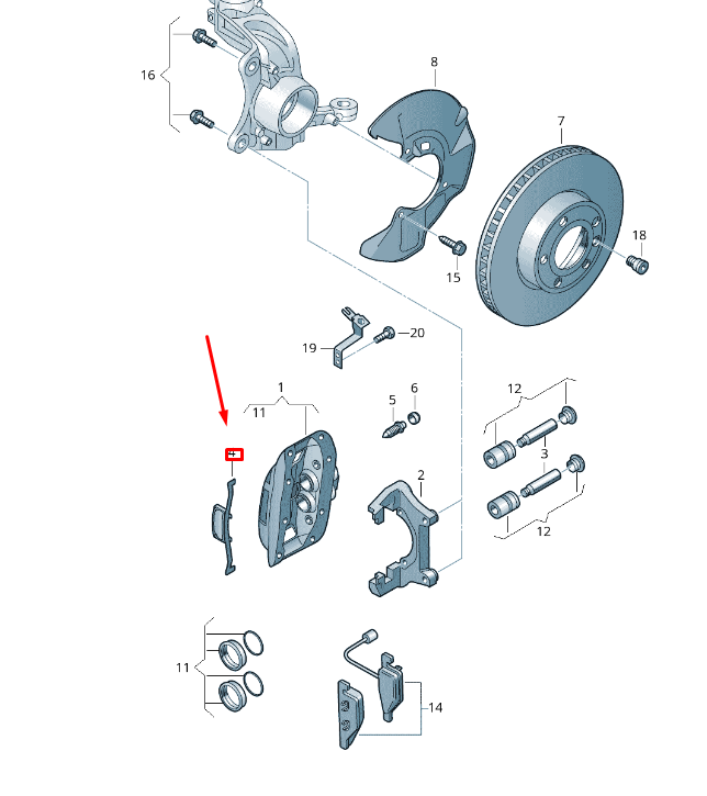 VW Transporter T6 Front Brake Caliper Retaining Spring 7E0615295 OEM