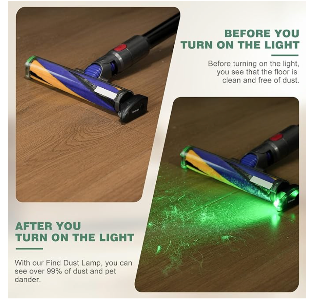 Vacuum Cleaner Green Dust Illumination Light – USB-C Rechargeable, Compatible with Dyson & Shark Vacuums Key Features: Breakthrough Green Light Technology: See hidden dust and pet hair with precision. The angled green light makes it easy to spot invisible debris, a true innovation in cleaning. Affordable & Effective: At just $21.99, this green light offers better value than expensive $700 Dyson models. Focus on areas that need cleaning for a superior user experience. Long-lasting & Rechargeable: Equipped with an 800mAh battery for up to 15 days of use on a single charge. 3 adjustable modes for versatile cleaning. USB-C charging cable included. Universal Compatibility: Works with Dyson V7-V15, Shark, Eureka, Bissell, INSE, Tineco, and many more popular brands. Suitable for all hard floor surfaces, and compatible with upright, stick, handheld, and canister vacuums. Durable & Waterproof: IP65 waterproof design ensures longevity and reliable performance. Comes with 5 hook and loop tapes for secure attachment, preventing the light from falling off during use. Peace of Mind: Backed by a 2-year warranty. Contact us anytime for assistance. Perfect for: Anyone looking for a smarter, easier way to spot dust and pet hair while vacuuming. A must-have accessory for your vacuum cleaner at an unbeatable price!