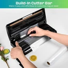 Preserve Foods Longer Experience the convenience of automatic vacuum sealer that effortlessly vacuums and seals your food, eliminating the guesswork and ensuring a secure seal every time. Now you can seal in the goodness and flavors of your favorite ingredients, extending their shelf life with ease. Inner Sliding Blade Say goodbye to uneven cuts and wasted material. Simply pass the sous vide vacuum sealer rolls through the cutter, slide the button from left to right, and effortlessly obtain a vacuum-sealed bag. This innovative design enables you to seal multiple bags simultaneously, streamlining the process. Dry Food & Moist Food Features Adapt to your food's moisture content effortlessly. For example, Refrigerating vacuum sealed cheese will last up to 8 months, as opposed to the 1-2 weeks for cheeses stored using standard methods. Vacuum sealed meat will last 3 years in the freezer but the meat will typically last about 6 months by using traditional methods. The food vacuum sealing machine features both dry and moist modes, allowing you to seal a variety of items without compromising on freshness. Compact and Efficient Measuring at 15.35 * 6.1 * 3.4 inches, our airtight seal machine boasts a compact design that won't occupy much space on your kitchen countertop. Its space-saving feature makes it easy to store when not in use, ensuring convenience and practicality. Our food vacuum seal machine also features a 13-inch long heat strip that allows you to seal multiple bags at once, effectively reducing your workload and saving valuable time. Food Storage - Choose the Food Vacuum Sealer Machine for Freshness that Lasts! KEEP FOOD FRESH LONGER: Extend the shelf life of your food with our super saver vacuum sealer with bags. This airtight seal machine is great for preserving the freshness and quality of your meats, vegetables, fruits, and more by sealing out air and preventing freezer burn. DRY & MOIST MODES: Whether you're sealing dry ingredients or moisture-rich dishes, our food vacuum sealer machine wet and dry modes offers specialized features that cater to every culinary creation, from marinated meats to delicate desserts. BUILT-IN CUTTER: Streamline your meal prep process with the convenience of our vacuum sealer with cutter. No more fumbling for scissors or knives compared to other vacuum sealers - simply customize your bag size, seal, and cut with seamless efficiency. POWERFUL VACUUM SEALER: Equipped with a strong suction motor, this vacuum sealer for food ensures a tight and secure vacuum seal every time. The robust system of our food vacuum sealing machine removes air efficiently, creating an airtight fix that locks in flavor and nutrients. INCLUDES VACUUM SEALER BAGS: Start sealing right out of the box with our complete starter kit that includes vacuum seal bags. The package comes with a variety of sizes and an extra seal gasket, ensuring you have everything you need to get started.