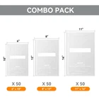 11" x 16", 8" x 12" and 6" x 10", Vacuum Sealer Bags, 150 Pack - Heavy-Duty, BPA-Free, Puncture-Resistant, Air-Tight Food Storage Bags for Long-Lasting Freshness and Nutrients Versatile 11" x 16", 8" x 12" and 6" x 10" Bags: Perfect for preserving freshness and Nutrients, storing food, and sous vide cooking, these BPA-free bags ensure air-tight sealing for long-lasting storage. Durable Thickness: Designed with extra thickness for added strength and puncture resistance, providing a secure, air-tight seal that locks in flavor and nutrients. 5 Bone Guard Pieces Included: Protect your vacuum sealer bags from punctures when sealing sharp or hard foods. These specially designed Bond Guard Pieces prevent damage during sealing, ensuring a secure, leak-proof seal every time. 5 Liquid Block Bags for Leak-Free Sealing: Ideal for Juicy foods, these special bags feature an innovative design to prevent spills and leaks during the sealing process, making them perfect for soups, sauces, and marinated items. BPA-Free, Food Safe, and Freezer Friendly: Our vacuum sealer bags are made from high-quality, BPA-free materials that are safe for food storage and freezer use, ensuring optimal freshness for months.