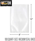 Store New Arrivals Add to Favorite View Feedback Contact Vacuum Sealer Food Bags, 8" X 12", Quart Size, 100 Count, Transparent Description Item model number 30-0101-W Capacity 1 Quarts Number of Items 1 Blade Edge Vacuum Sealer Accessories Country of Origin China Batteries Included? No Number of Pieces 100 Unit Count 100.0 Count Batteries Required? No Material Transparent BPA free food grade plastic Model Name Vacuum Sealer Bags, 2 Ply 3mm Is Microwaveable Yes Is Discontinued By Manufacturer No Included Components 100 Quart-Sized Bags Item Package Quantity 1 Item Weight 0.352 ounces Material Type Free BPA Free Special Features Lightweight, Freezer Safe, Microwave Safe Special Feature Lightweight, Freezer Safe, Microwave Safe Closure Type Vacuum Seal Part Number 30-0101-W Color 100 Count, Clear Global Trade Identification Number 20834742007324, 00014445371311, 00834742007320 Shape Rectangular Recommended Uses For Product Cooking Product Dimensions 8"W x 12"H Size 8" x 12" (Quart) WORKS WITH FOODSAVER AND ZIPLOC SYSTEMS* These bags are compatible with other various brands heat-seal vacuum systems HEAVY DUTY, TWO-PLY MATERIAL 30 mil thickness, FDA food safe material and BPA-free EXTENDS FOOD STORAGE TIME Vacuum sealing locks in food's freshness, flavor and nutritional value PRE-CUT TO 8 x 12 INCHES 100, quart-size bags are included KEEP NON-FOOD ITEMS DRY, TOO Keep valuables, emergency supplies, firearms and more dry until ready to use *FoodSaver and Ziploc are the registered trademarks of Sunbeam Products, Inc, and SC Johnson and Son, Inc, respectively Use of the marks does not imply any affiliation with or endorsement by the mark owners 100 vacuum-sealer bags keep food fresh up to 5 times longer Made of 2-ply, 3-mil nylon with a layer of polyethylene mesh For use with Weston-brand sealers and external-clamp vacuum sealers Freezer- and microwave-safe; can be boiled in water for thawing Measures 8 by 12 inches each Weston 8" X 12" (Quart size) two-ply, 3.0 mil thick, heavy duty bags can be used with most leading brand Vacuum Sealers, including Food Saver and Ziploc*. Vacuum sealing extends food storage time - locking in freshness, flavor and nutritional value. They're also great for keeping valuables, emergency supplies, firearms, and many other items dry and sealed until ready to use. Fda food safe material and BPA free. The box contains 100 pre-cut Vacuum bags. ABOUT US We offer the best prices around on high quality products. Our E-store includes media such as books, movies, music and games while offering electronics, toys, sporting apparel, clothing, tools, general home, garden items and more. SHIPPING We are always working hard to ensure your package arrives as soon as possible. Please understand that some factors like weather, high postal traffic, and the performance of shipping companies are outside of our control. We offer free shipping to the lower 48 states and ship within 2 business days of payment, usually sooner. We do not accept P.O. Boxes. Please provide a physical address. For shipping outside of the continental USA, we only use eBay's Global Shipping Program.The item is shipped to KY and then sent to the rest of the world. International customers are responsible for all duties and taxes. Continue to check out in order to calculate costs for shipping the item to your country. Messages regarding eBay's Global Shipping Program MUST be directed at eBay EXCLUSIVELY. RETURNS We offer a 30-Day Return Policy on items which you are not completely satisfied with. You have the option for a full-refund or an exchange of the item. No returns are available on items shipped outside of the USA. PAYMENT We accept PayPal. CONTACT US This page content is yet to come Please ad us to your favorite seller and visit again later Thank You CUSTOMER SATISFACTION We try our very best to make sure every customer is completely satisfied. If there's a problem, message us! We're happy to help. WE ACCEPT Copyright © 2021 AutoDS. | All Rights Reserved