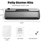 Food Vacuum Sealer: Features a one-touch fully automatic operation and a compact design, making it a true space saver in your kitchen. Constructed from durable stainless steel and ABS, it boasts an impressive 85kPa suction, sealing with a 5mm width for a tight and secure seal, making our appliance the best companion for your sous vide cooker and food dehydrator. It offers 5 preset modes for various food types, functioning as an efficient food processor, and includes an 11.8’’ built-in cutter for flexible bag sizing. Easy to clean with a detachable drip tray, it comes with 15 pre-cut bags and a suction hose. Choose , simplify your food preservation tasks with our best food sealer, and seal a meal effortlessly. 【ENJOY FRESHNESS AND SAVE MONEY】: Featuring 5 specialized modes to meet any food preservation needs and keep food fresh up to 10 times longer, Dry & Moist — ideal for a wide range of foods from grains, fruits, and vegetables to meats; Seal Only — effortlessly reseals half-empty chip bags; Manual Vacuum — offers precise control for delicate items; Canister Mode — perfect for marinating and pickling. 【QUICK & SECURE SEALING EVERY TIME】: With 135 watts of power, 85KPA suction, and a 12-inch long enhanced seal strip, our vacuum sealer machine ensures a fast and secure seal every time.This food vacuum sealer is truly the ultimate food saver. 【INTUITIVE ONE TOUCH OPERATION】: Simply place the vacuum bag into the food vacuum sealer, select the mode based on your food type, and press the button. That’s it—sealing your food is that simple! Say goodbye to manual hassle. Try it out and add to cart now. 【CONVENIENT FEATURES & READY-TO-USE KIT】: Features an 11.8-inch built-in cutter and a washable, detachable tray for easy cleanup. Includes 15 pre-cut bags (7.8” x 9.8”) and an external suction hose, providing everything needed to start sealing immediately. 【ULTRA COMPACT & SOLID DESIGN】: At just 2.2 inches at its thinnest, this vacuum sealer machine optimizes kitchen space without compromising quality. Crafted from premium stainless steel and high-grade ABS, it's built to last. 【Professional Customer Support】: Enjoy a 1-year warranty, 30-day free returns, and lifetime technical support. We promise to resolve any issue within 48 hours. We truly value our customers and are committed to ensuring your satisfaction.