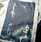 ***Treasure Suite offers you many pieces of my art prints now*** ###This section is for large sized sublimation prints of my digital art. measurements are 15"hx12"w. ### A 12x15 sublimation print of my digital artwork of the always lovely Vampira chilling and smoking it up by ye ol' cobweb. *Welcome to my unique collection of digital art, where creativity meets craftsmanship! Each piece in this category features my original designs, heat pressed into vibrant sublimation prints on polyester canvas material. These art pieces are not just decorations, they are collectibles that bring a touch of gothic, rock and roll, horror, pin-up, and lowbrow art into your space. *I leave extra fabric border so you can gallery wrap on frame,cut to size, or sew onto clothes. Sublimation printing is what's done on clothing, like all over sweaters,tshirts,banners,etc. So that means it can be used on clothing and washed. If print gets wrinkled, you can steam it. *These pieces are perfect for adding a distinctive edge to your home or office, and they make fantastic gifts for art enthusiasts and collectors alike. Who doesn't enjoy vibrant digital art of out of this world space huntresses, demon witches, cyberpunk vixen cyborgs, spooky mistresses,and so on?