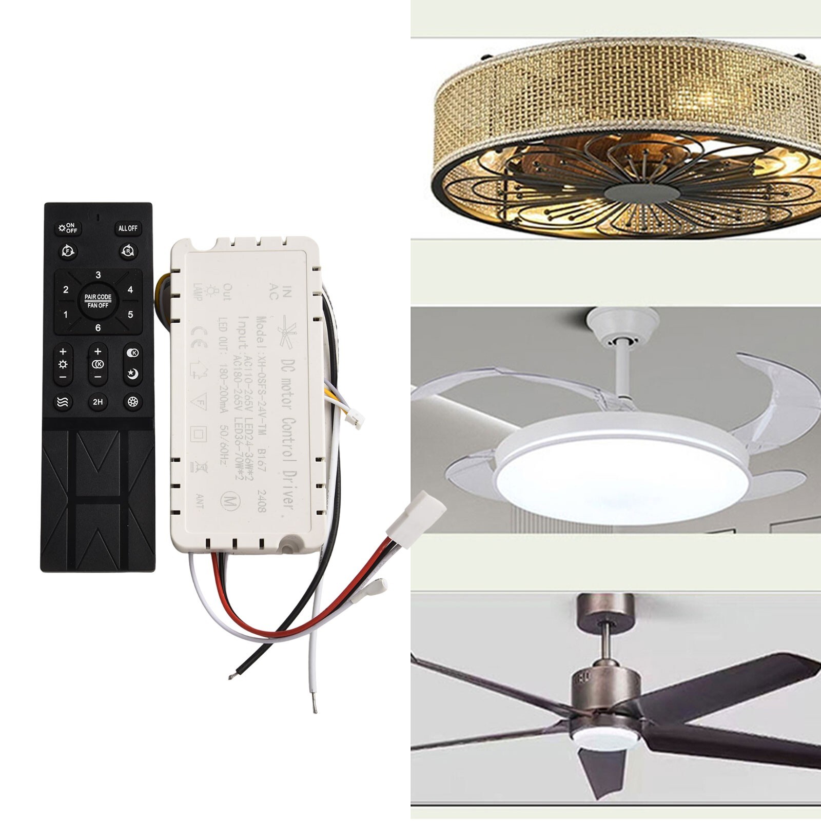 Product Description Features: Features: * Variable Frequency Control: This remote control for ceiling fan light allows for variable frequency control, giving you the flexibility to adjust the fan speed to your preference. * 6 Speed Settings: With 6 different fan speed settings, this remote control provides you with a range of options for comfortable airflow throughout the year and in any room size. * Battery Monitoring: Equipped with a battery monitoring function, this remote control alerts you when the batteries need to be replaced, effective control of the fan. * Convenient Reset: Resetting the remote control to factory settings can be done easily. Simply turn on the power and hold it for 2 hours until you hear a beep, indicating successful code clearance. (Note: The fan's wall switch may need to be turned on for effective control) * Applicable to: bedroom fan light, FOR Hongyun fan, etc. *Note: When using for the first time, the remote control needs to be matched with the receiver inside before it can be remotely controlled How to pair the XH bedroom remote control: Turn off the power on the wall, turn it on again, press and hold the middle round button "PAIR CODE/FAN OFF" for 5 seconds, the receiver will beep twice, and pairing is successful! Specifications: *Part Name:Ceiling Fan Light Remote Control Kit *Material:PC *Size: as shown in the picture * Color: as shown in the picture * Voltage: AC 110V-265V * Output Voltage: 24V Package Content: 1*Ceiling Fan Light Remote Control Note: 1. The real color of the item may be slightly different from the pictures shown on website caused by many factors such as brightness of your monitor and light brightness. 2. Please allow slight manual measurement deviation for the data. Payment Payment must be completed within 5 days. If you have any problems about payment, please contact us via ebay message. Delivery details We only ship to confirmed ebay Order addresses. Please comfirm that your Order address is in line with your shipping address. Please kindly note that the c ombined shipping is not provided because the shipping fee is calculated by weight. Also, the each additional item means exactly the the same color and size. It takes about 7 -15 working days to US; about 10-30 working days to other countries. Transit time may be a little delayed because of the bad weather and customs inspection . If you do not receive your item within 30 working days since payment finished, please contact us immediately for further assistance. Contact us We strive for 100% customer satisfaction! Positive Feedback is very important to us. If you have any questions, p lease feel free to contact us via "Ask seller a question" . We will reply your email within 24 working hours. On May 13, 2025 at 22:06:44 PDT, seller added the following information: