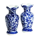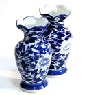 Set of 2..... Small Vases / Ceramic - Porcelain / Cobalt Blue & White / Floral Design / Ruffle Rim / Asian Style .......4 3/4" tall x 2 1/2" wide .............Please email with questions .....I will combine shipping if possible.....Thanks!!!