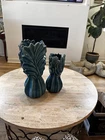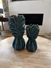 Enhance the beauty of your home decor with these stunning sculpted vases. Perfect for displaying your favorite flowers or as a standalone decorative piece, these vases are a rare find that will add a touch of elegance to any room. Available in two sizes, 15in height and 12in height, these vases are designed to complement any space. Whether you're a fan of traditional or modern decor, these vases will effortlessly blend in to create a unique and captivating display.