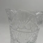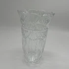 This beautiful vintage Bohemian glass flower vase features intricate floral etching and scalloped edges. The clear crystal material adds a touch of elegance to any home decor, while the 12 inch height makes it a statement piece. The vase is perfect for displaying fresh or dried flowers, and adds a touch of vintage charm to any room. The vase is from Bohemia and boasts a brand that is recognized for quality and craftsmanship. Its unique floral pattern and scalloped design make it a one-of-a-kind piece that will surely catch the eye of any guest. Whether you're an avid collector or simply looking for a stunning vase to display your favorite blooms, this vintage vase is an excellent choice.