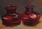 A new 5x7 unframed oil on panel antiques still life by Texas artist Patrick Pence. I wanted to capture the ruby red colors on the vases. Ready to ship!