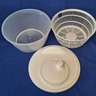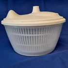Vegetable Salad Spinner This spins your Vegetables/Fruit to release the water This is 6 1/4" tall x 9 1/2" in diameter Comes with Bowl, Strainer and Lid Great Condition!