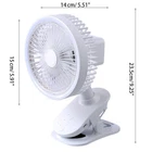 5.9'' USB Rechargeable Fan Desktop Fan 3 Speed Clip Fan 2400mAh for Office Features: size that make it easy to carry.High material, practical and durable. Table fan, clip fan two-in-one small size, can be placed freely, in the car, table cabinet, 360° air supply, cool without dead ends, noiseless and low energy consuming, and increasing wind's power. Multi-functional use such as desk fan, clip fan, night light, The compact body can be carried as EDC tools. capacity is 2400mAh and output power is 5.3W. It comes with 3-speed wind speed. Specifications: Color: White, Blue (optional) Size: approx. 150x140x235mm/ 5.91x5.51x9.25in Working Current: 310mA-920mA Charging Time: about 3 Hours Use Time: about 8 Hours Working DV5V/1.5A Package Includes: 1x Fan 1x Data Line 1x Manual note: Please allow 1-2cm errors due to manual measurement,pls make sure that you do not mind before you order. Due to the difference between different monitors, the picture may not reflect the actual color of the item.