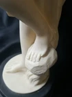 The little toe on the left foot is incomplete. Not noticeable unless closely inspected. No other chips cracks or repairs.
