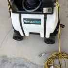 This is a Versaclean VC700 carpet cleaner and accompanying portable water tank. Vacuum comes included with water pump-in and pump-out systems and has cleaning solution intakes. The water tank has a 35 gallon capacity.