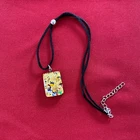 Vetro Di Murano Gold Glass Pendant Necklace with Millefiori Chips 9" Black Cord. This very nice pendant necklace would be a wonderful addition to your jewelry collection. It is in very nice condition with no chips or cracks. Its has a lobster claw clasp and an adjustable 9" black cord. Thank you for taking a look.