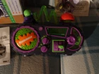 Vintage 1995 Nickelodeon N200 Time Blaster Digital AM/FM Alarm Clock Radio Rise & Slime - a special edition vintage piece, that will bring fun to any collection. Digital display type, purple and green coloring A must - have for any Nickelodeon fan. Powered by electricity, quartz movement, a reliable timepiece Original box, has been opened, but never used. Paperwork included Features AM/FM clock radio, sounds/talking, battery backup, alarm, radio, and musical features Made of plastic Vintage / retro style Really Cool Piece !!!