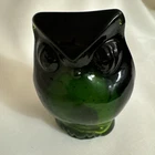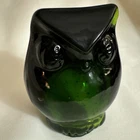 Vintage 3 Inch Green Glass Owl Paperweight Figurine