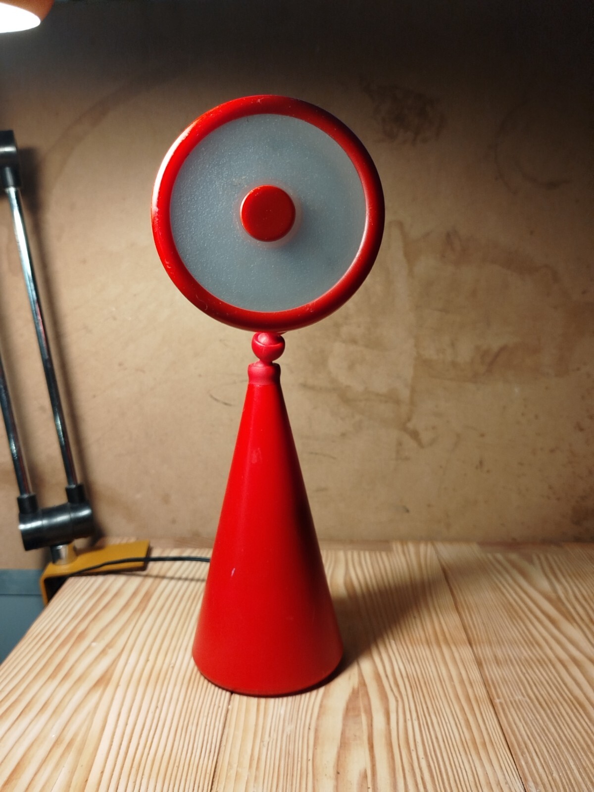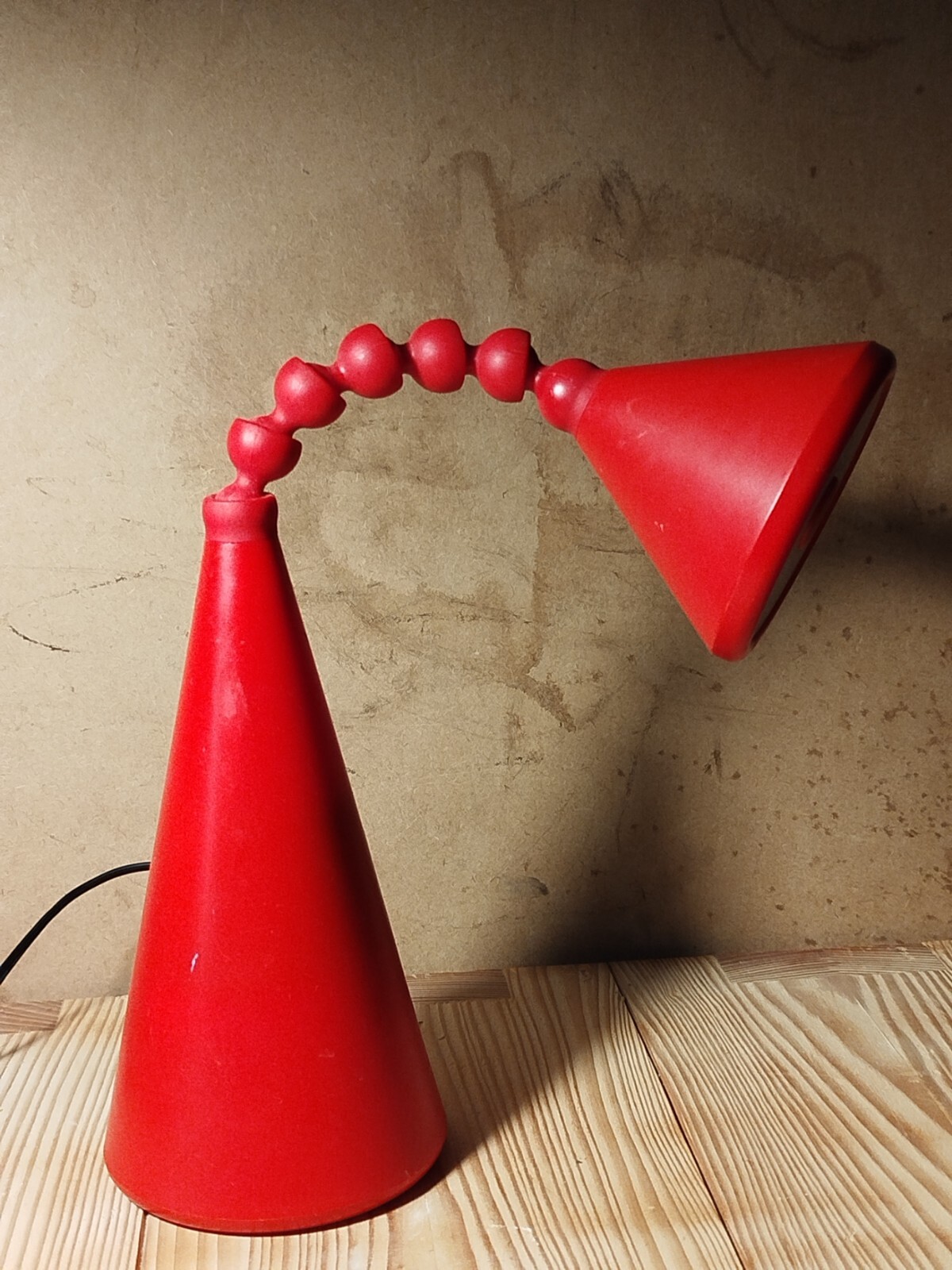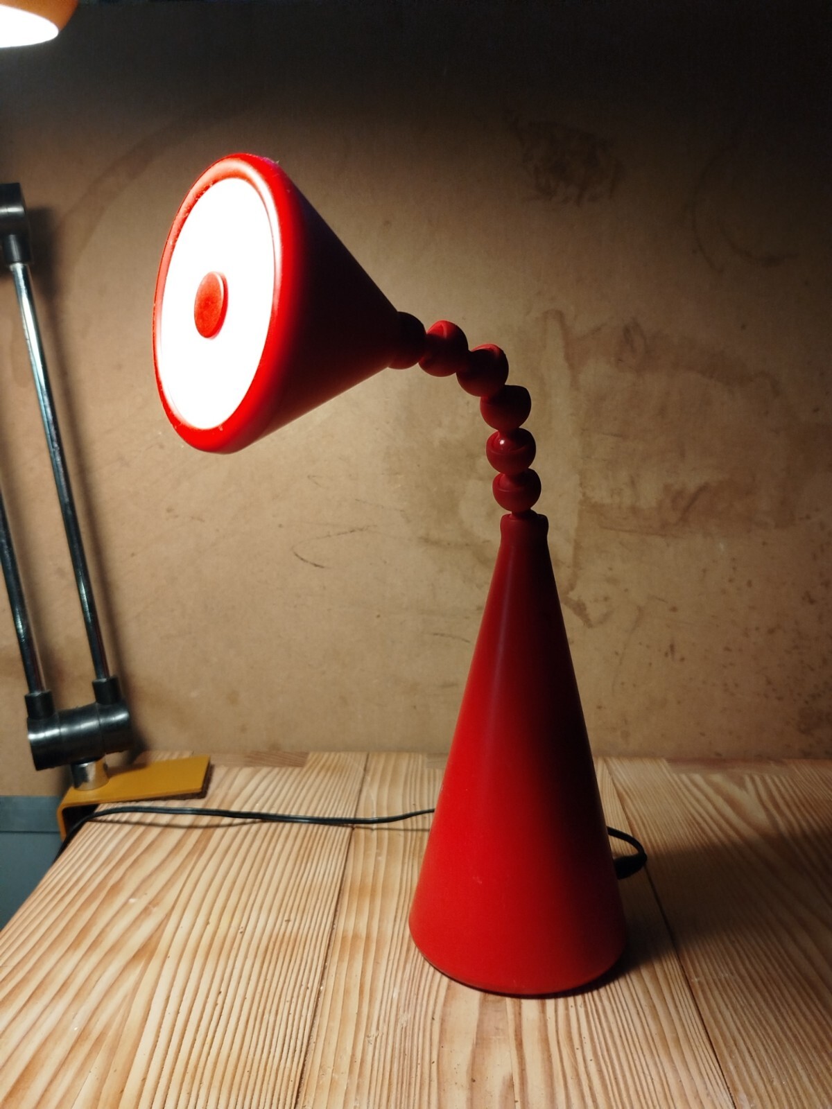 lampe de bureau - IKEA Fryebo rouge années 90 éclairage LED . Marche / Arrêt appui sur le point rouge au centre Petit prix