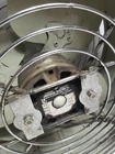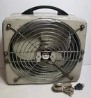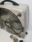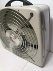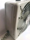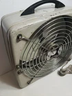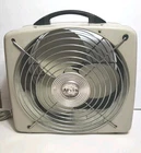 Vintage Mid Century Modern Box Fan. All metal finish with metal cover grill on both sides. Nice Art Deco skyscraper style handle. Shows surface wear. Mid century modern style design. Made by Arvin Industries - Columbus Indiana. Measures approx 16" tall x 17" wide x 7" deep. Made in the USA. Works great on both speeds.