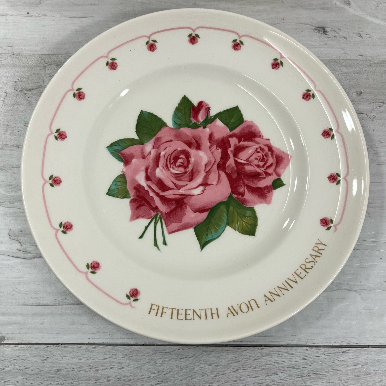Vintage Avon 15th Anniversary Roses Enoch Wedgwood Sales Dealer Collector Plate Significant grazing which can be seen in pictures Hand wash Not for food 9" Plate Measurements are approximate Colors may differ based on others computer/phone/etc settings