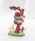 Vintage Boy being chased up a Tree by a Puppy Dog – Christmas Ornament. Hummel Style. Made in Hong Kong. Hard plastic. 4” tall x 2 3/8” wide x 1 ½” deep. Top cord for hanging; figure is free-standing also. Please Note: There is some paint missing the boy’s hair tips in front of face, side of one face and tips of neck bow. Item is being offered, “As Is”. It will be shipped in a small mailing box. PLEASE NOTE: Please forgive the Lighting. I do my best to describe the item as well as possible. In the event item does not arrive to you as described, Please contact me before leaving a Feedback. --------------------------- Buyer pays Actual Shipping plus $0.60 Packaging Fee. No Local Pickups. This item weighs approximately 0 pound 4 ounces US. All communications must be in English. Items are packaged prior to Listing, Therefore No Combined Shipping. --------------------------- If I do not receive a response from the winning bidder after one week, the item will be re-listed. Please contract us if you have any questions. Thank you for your consideration. ZDNZ 241210 4x4x4 C2019