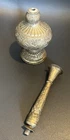 This vintage brass rosewater sprinkler is a unique piece that originates from Islamic/Middle Eastern India. The antique bottle has a beautiful design and is made of high-quality brass. It is a perfect addition to any collection of Asian/Oriental antiques and is sure to impress. The sprinkler is in its original form. It measures 28cm in length and is a must-have for those who appreciate vintage and antique items.