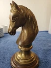 Vintage Bronze look Finish Horse Head Sculpture Bookend on Wooden base. 9 in tall with a 5" round wooden base. Very heavy and very old.