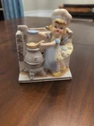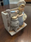 This vintage ceramic planter features a charming design of a girl with pig tail, hand painted on a 5 inch long planter. The planter is perfect for collectors and enthusiasts of unique decorative items. It is made of high quality ceramic material and is suitable for indoor or outdoor use. The planter's multicolor design adds a touch of playfulness to any space and is sure to catch the eye of anyone who sees it.