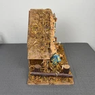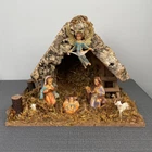 Vintage Christmas Nativity scene. Made in Italy. Good condition - some loose moss. The six figurines are permanently attached. Baby Jesus, Mary, Joseph, Gabriel, two sheep. I'm not sure if there are figures missing. The base measures 12" x 6" and the piece is 9" tall.