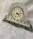 Vintage Clear Cut Glass Mantle Clock with Iron Rose Accents 7x5 Not tested- middle pops out easily for batteries Item is preloved and may have minimal signs of wear- please inspect all photos before purchasing