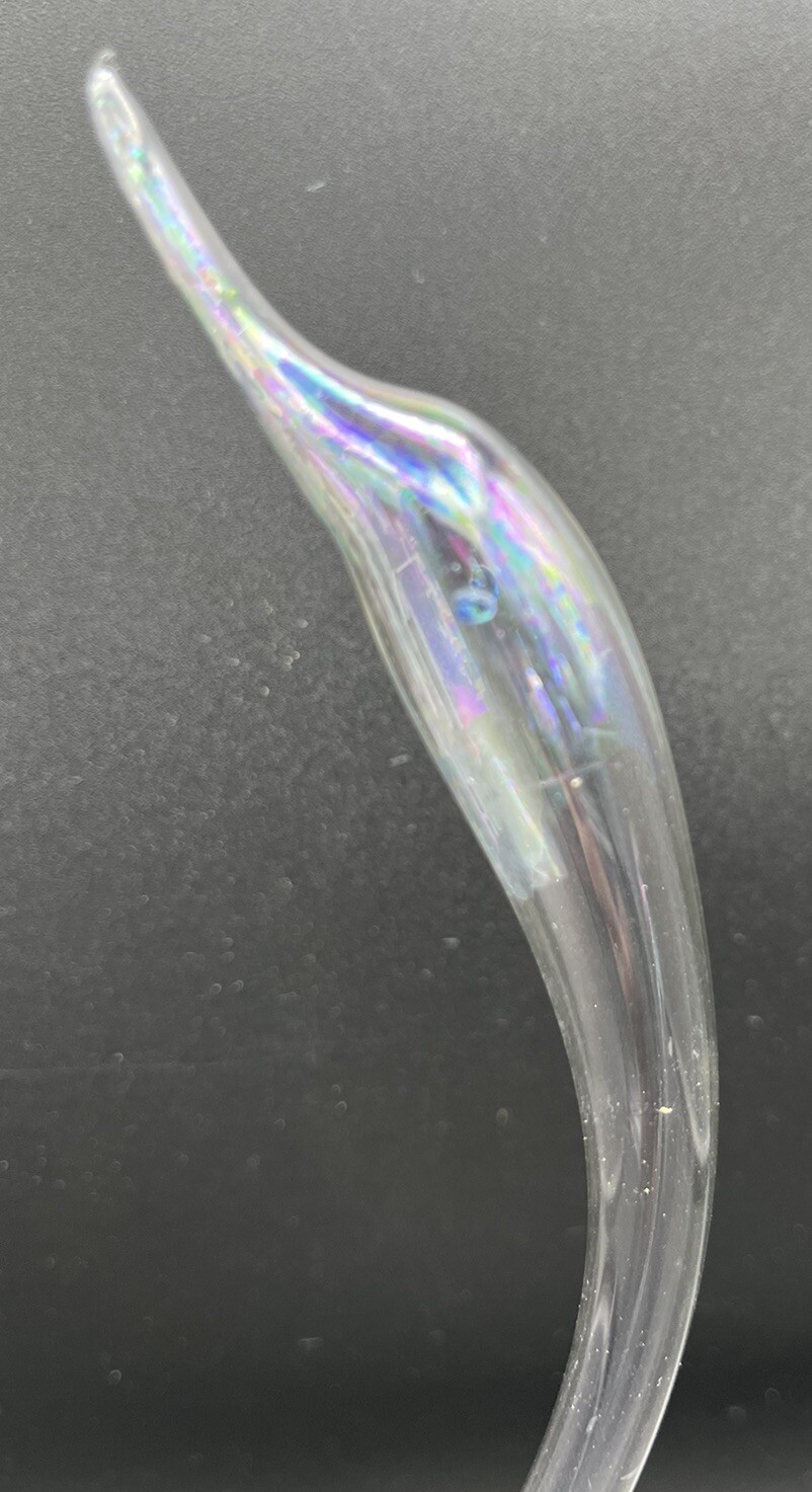 Add a touch of elegance to any room with this pair of vintage glass swan plant propagation air vases. The iridescent finish and hand-blown glassmaking technique make these vases a unique addition to your collection. Measuring 10 inches in height these iridescent clear glass vases are perfect for displaying in a room with any theme. The swan shape adds a touch of whimsy to your décor. These vases are perfect for any occasion and will be a conversation starter.