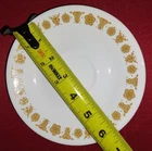 Add a touch of vintage charm to your dinnerware collection with this beautiful Corelle Corning Butterfly Gold dinner plate. The round plate features a stunning butterfly and floral pattern in a vibrant gold color, making it perfect for all occasions. Crafted from high-quality pressed glass material, this plate is both break-resistant and dishwasher safe, ensuring easy maintenance. The plate is part of the Butterfly Gold product line and was manufactured in the United States in the 1970s using a fused glass production technique. It comes with a printed backstamp and is perfect for collectors or anyone looking to add a touch of Mid-Century Modern style to their home decor. Order yours today and enjoy the beauty and functionality of this vintage dinner plate.