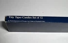 New Old Stock Vintage Mid-Century Modern DANSK Tiny Taper Hand Dipped Candles Box of 12 in dark red Especially designed to fit Dansk International candlestick holders and candelabras. Length: 16 inches / Width: 1/2 inch Some candles may have cracks or some warping. Please carefully examine the photos for exact condition of box and candles.
