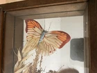VINTAGE Dried Flowers, Butterfly & Yellow Bird Wall Hanging Frame is dove-tailed wood, with glass front and mirrored back. Approx. 12-1/2" L x 6-3/4" W x 1-1/2" D Very good condition, but please see pictures for details SMOKE-FREE HOME