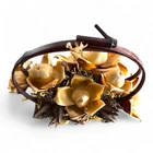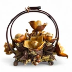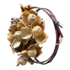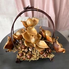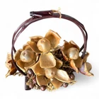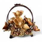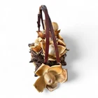 The vintage arrangement is filled with dried Hawaiian flowers and foliage, adding a touch of nature to any space. It is a small-sized basket that is perfect for displaying on a table or wall. Materials: large and baby Woodrose, Lipstick Pods, and Ahunui (pine cones) It comes in its original box post marked 1965, and a type written description. It’s in excellent vintage condition.