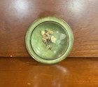 This vintage paperweight features a beautiful ocean-themed pattern with multicolored dried flowers magnified under a glass dome. The intricate details of the art glass production style make it a unique addition to any mid-century modern collection. It is an original piece and not a licensed reproduction. This decorative item is perfect for anyone who wants to add a touch of vintage charm to their home.