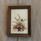 This vintage wall art features a beautiful arrangement of dried flowers, perfect for adding a touch of elegance to any room. The small picture framed measures 8" x 6" .The piece is handmade and crafted with care, making it a unique addition to any collection. It is perfect for those who appreciate the beauty of handcrafted art and want to add a touch of vintage charm to their home.