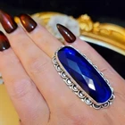 Color: Silver Style: Cocktail, Band Type: Ring Main Stone: Sapphire Metal: Silver Occasion: Anniversary, Birthday, Engagement, Christmas, Mother's Day, Valentine's Day Vintage: Yes Metal Purity: 900 Shape: Oval Main Stone Color: Blue Main Stone Creation: Lab-Created Ring Size: 8 Number of Gemstones: 1 Country of Origin: India Setting Style: Bezel Brand: Sterling