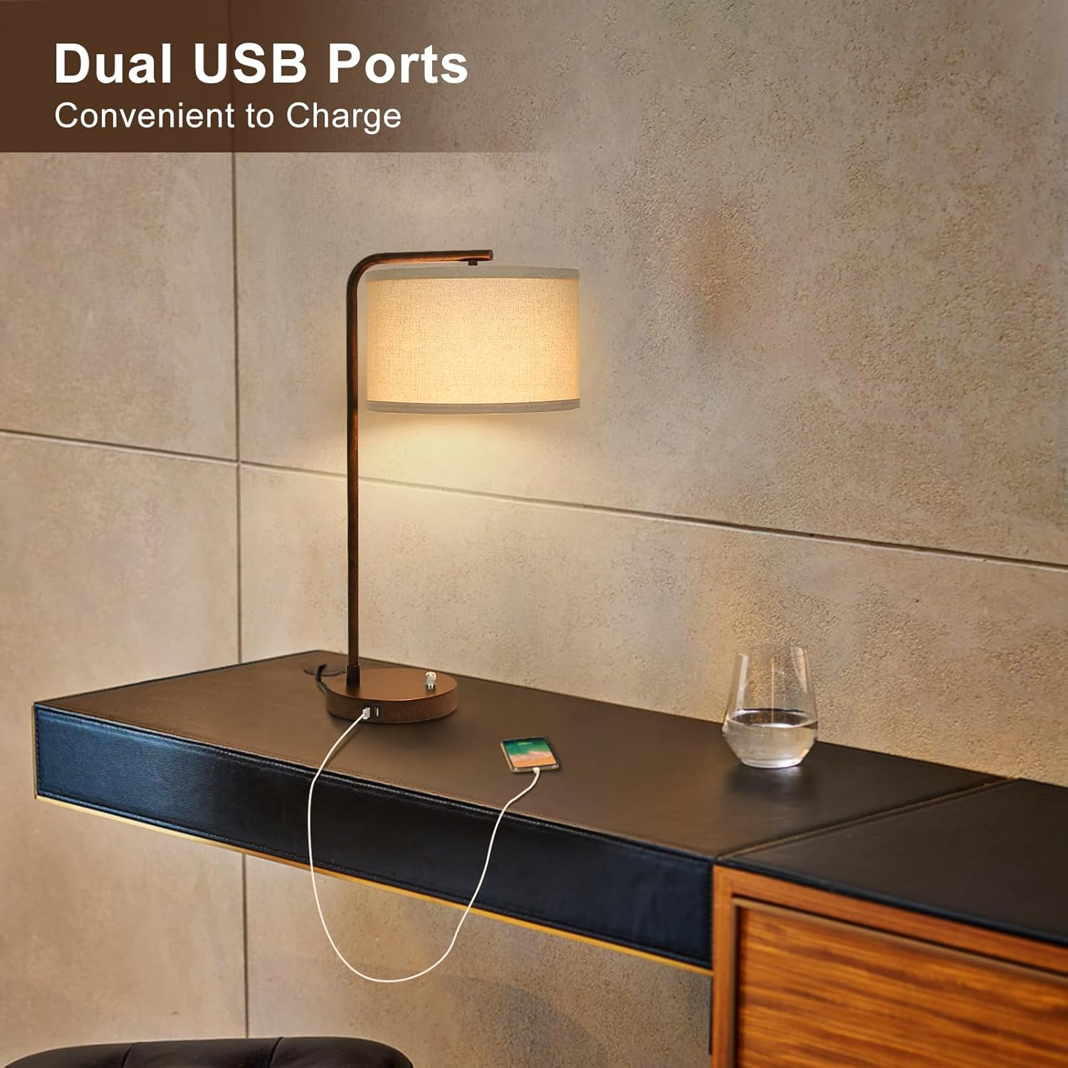 Store New Arrivals Add to Favorite View Feedback Contact Vintage Table Lamp, Fully Dimmable Table Lamp with Dual USB Charging Ports, Farmhouse Bedside Lamp Nightstand Light, Tall Reading Desk Lamp for Living Room, Bedroom, Office, 9W LED Bulb Included Description Light Source Type LED Style Industrial, Vintage, Minimalist, Farmhouse Number of Items 1 Power Source Corded Electric Pattern Solid Number of Light Sources 1 Control Method Touch Batteries Included? No Lighting Method LED Lamp Type LED Number of Pieces 1 Room Type Office, Bedroom, Living Room Finish Brushed Bulb Shape Size A19 Product Dimensions 13.98"D x 13.98"W x 25"H Material Linen, Metal Installation Type Countertop Controller Type Dimmer Finish Type Brushed Specific Uses For Product Indoor use only Is Waterproof False Included Components 1xtable lamp, 1x A19 bulb, 1x fabric shade Indoor/Outdoor Usage Indoor Brightness 800 Lumen Country of Origin China Water Resistance Level Not Water Resistant Batteries Required? No Item Weight 4.71 pounds Connectivity Technology USB Connectivity Protocol Homeplug Special Features Stepless Dimmable, 2 USB Charging Ports, LED Bulb Included Special Feature Stepless Dimmable, 2 USB Charging Ports, LED Bulb Included Part Number FS-USB-AB Shade Color Beige Mounting Type Tabletop Color Antique Bronze Wattage 9 watts Is Cordless? No Base Material E26 Bulb Base E26 Shape Curved Voltage 120 Volts (AC) Recommended Uses For Product Reading Shade Material Fabric Switch Type Dimmer Fully Dimmable & Stable Base: To ensure the stability, the base and poles of our table lamp are made of high-quality metal material, will not let the lamp be knocked over by kids or pets readily. Besides, we add a rotary dimmer switch on the base, no fumbling to pull a cord or toggle a button, the brightness control is at your fingertips. Practical 2 USB Charging Ports: This industrial lamp has two integrated built-in USB ports at the side of the base, not only could the unsightly extension cords be saved, but you'll have an easy access to charge your phone or small electronic devices while sitting down beside the lamp. No matter the lamp is on or off. Minimalist & Farmhouse Look: Pairing subtle contemporary inspiration with slender silhouette and hardback drum shade, this collection will bring a sense of mid-century and modern charm to your living space. Using practical cantilever design, our bedside lamp can offer a perfect sized lampshade with small footprint on the tabletop to you. 9W Led Bulb Included: After testing most of bulbs on the market, we finally choose 3000K 9W Led bulb to match the table lamp for living room. Drawing just 9W of power while producing 75-100W incandescent equivalent light, this bulb could provide adequate light with lower heat, meet your daily lighting needs faultlessly. Widely Used & Easy Installation: With a outstanding mix of utility and aesthetics, this desk lamp would be an ideal choice for accenting your living room, bedroom, study room or den. Just need a small amount of assembly within 15 minutes or less to start it. You can follow the installation steps in the manual to assemble the product, or refer to the more detailed installation steps with images and videos on the product page. Product Description Specification Dimmable: Yes Lamp Holder: E26 USB Port: 5V/2.1A Voltage: 110-130V Wattage: 60 Watt max Item Height: 25in/635mm Bulb info: A19 3000K Package Contents 1* Shade cloth 2* Metal rings 1* Table Lamp 1* A19 Led bulb 1* Accessories Package Useful Dual USB Charging Ports In consideration of user charging custom, this USB lamp allows you to charge your phone or other small electronic devices without being busy at finding more outlets. The USB ports would stay powered as long as the lamp is plugged in. Warm Tips: 1.To avoid missing, 2 screws and the fixing ring are already locked on the lamp , we also prepared backup ones in the accessories package ; 2.Please don’t connect electricity before screwing the bulb tightly; 3.The total current of two USB charging ports is 2.1A. If two devices are charged at the same time, the current will be distributed. Beige Linen Shade The linen fabric lamp shade adds eye-catching style to this side table lamp, will soften the glow of a single bulb while allowing warm ambient light to shine through. Sturdy Metal Made heavy weighted metal into both lamp base and pole, this well constructed table lamp can provide solidity and stability better. Will not be susceptible to rust or corrosion, resistant for years of use. Qualified Lamp Holder To further prevent the lamp holder from overheating after persistent working, we adopted qualified material. for the lamp holder. Better heat dispersion and higher security performance. A19 LED Bulb Included For the convenience of using, one A19 9W 3000K energy saving bulb is included, 75-100W incandescent equivalent, could save your energy bills at least 90% while giving off the same light. ABOUT US We offer the best prices around on high quality products. Our E-store includes media such as books, movies, music and games while offering electronics, toys, sporting apparel, clothing, tools, general home, garden items and more. SHIPPING We are always working hard to ensure your package arrives as soon as possible. Please understand that some factors like weather, high postal traffic, and the performance of shipping companies are outside of our control. We offer free shipping to the lower 48 states and ship within 2 business days of payment, usually sooner. We do not accept P.O. Boxes. Please provide a physical address. For shipping outside of the continental USA, we only use eBay's Global Shipping Program.The item is shipped to KY and then sent to the rest of the world. International customers are responsible for all duties and taxes. Continue to check out in order to calculate costs for shipping the item to your country. Messages regarding eBay's Global Shipping Program MUST be directed at eBay EXCLUSIVELY. RETURNS We off