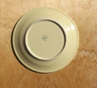 bright yellow.....semi gloss finish....measures 11.75 inches or 11 3/4 inches.......large plate.......use as a charger or to serve cook meats (not recommended to cut on) as well as large meals.......