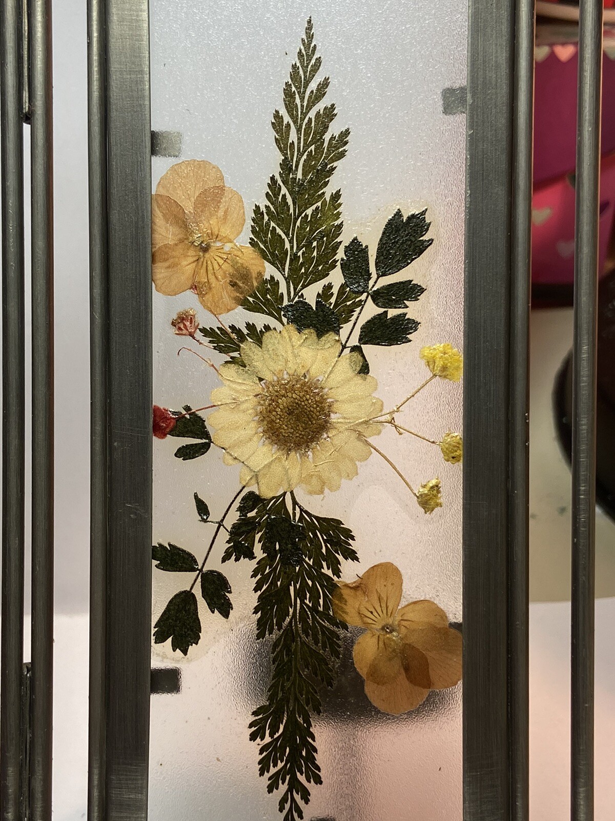 Vintage Dried Flowers Glass Lead Frame Double Candle Holder Votive Tea Light So beautiful. It is made by International Silver Co. and is from the 80s. Has rectangular, hinged panels with the dried flowers in the glass so you can move them a bit with leaded metal like you would find on vintage stained glass. The two tea light or votive candles sit in the two holders behind each panel. The candle holders are each about 1.5” in diameter. Overall, it is about 7.25” tall by 7” in length by 2.5” in width. No chips, breaks or repairs. See pictures for details and condition. Packaged carefully and shipped with tracking. (Q)